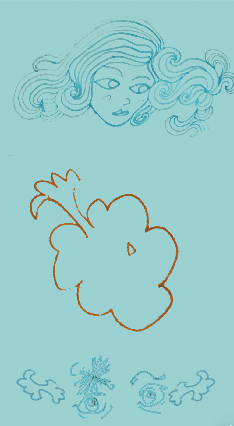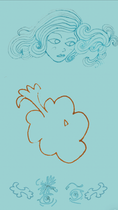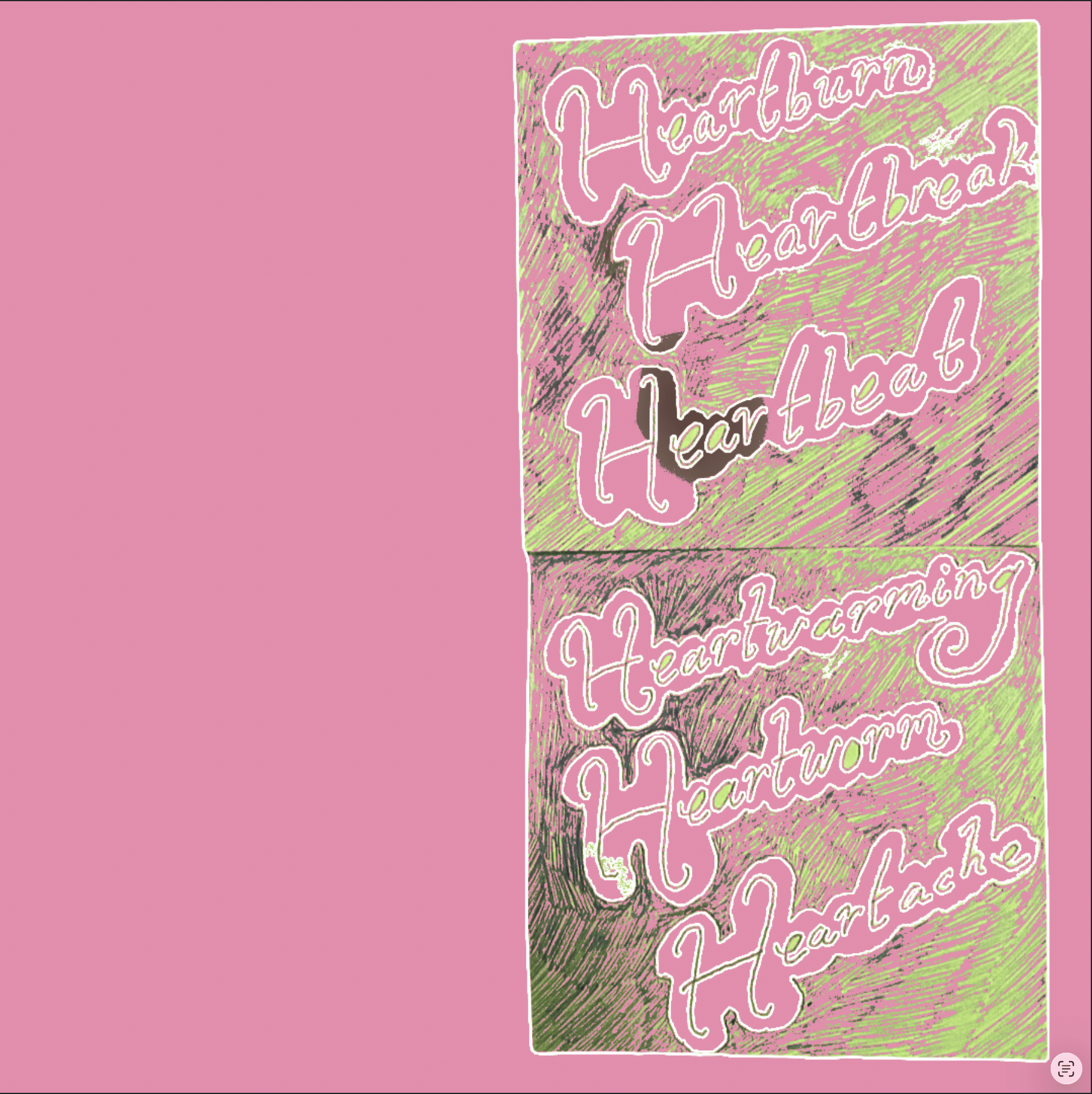 Ballpoint pen drawings on sticky notes and notebook paper, etc... made into digital collages on my phone on the train. And some oil pastel. 2025-2026